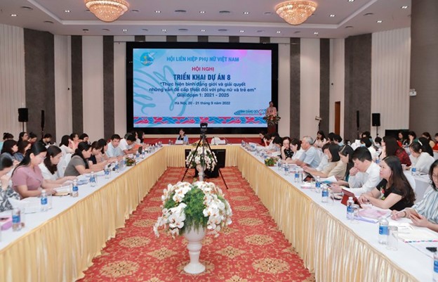 | Dự án 8 do Hội LHPN Việt Nam chủ trì, xây dựng và triển khai. Đối tượng của dự án là phụ nữ và trẻ em gái tại các xã, thôn đặc biệt khó khăn vùng đồng bào dân tộc thiểu số & miền núi. Dự án nhằm nâng cao nhận thức, thay đổi định kiến, chăm lo đời sống vật chất, tinh thần, bảo vệ, chăm sóc phụ nữ và trẻ em, thực hiện mục tiêu bình đẳng giới và tập trung giải quyết có hiệu quả một số vấn đề cấp thiết của phụ nữ và trẻ em vùng dân tộc thiểu số & miền núi giai đoạn 2021 - 2030. Đây là lần đầu tiên, trong chương trình Mục tiêu Quốc gia phát triển kinh tế - xã hội vùng dân tộc thiểu số & miền núi có riêng một dự án thành phần về thúc đẩy bình đẳng giới. |