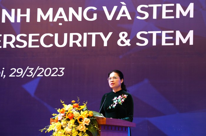 Trong khuôn khổ chương trình, các đại biểu thảo luận và chia sẻ về những sáng kiến, kinh nghiệm đa dạng trong việc thúc đẩy phụ nữ và trẻ em gái tham gia STEM cũng như xây dựng môi trường mạng an toàn cho phụ nữ và trẻ em thông qua Tọa đàm: “Phụ nữ với An ninh Mạng và STEM”.