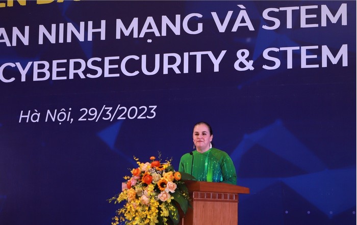 Bên cạnh đó, bà cũng đánh giá cao về những nhìn nhận, sáng kiến của Hội LHPN Việt Nam, các cơ quan, bộ, ngành ở Việt Nam về an ninh mạng, STEM và qua đó, cần thúc đẩy các chính sách không khoan nhượng liên quan đến bạo lực mạng, phối hợp với các bên để đảm bảo quyền cho phụ nữ và trẻ em gái, đặc biệt trong lĩnh vực công nghệ, STEM và trí tuệ nhân tạo.