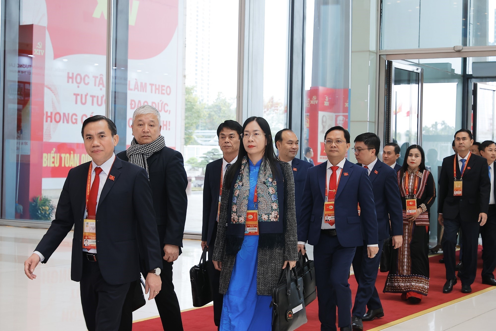 Các đại biểu tới dự phiên bế mạc Đại hội XIV của Đảng