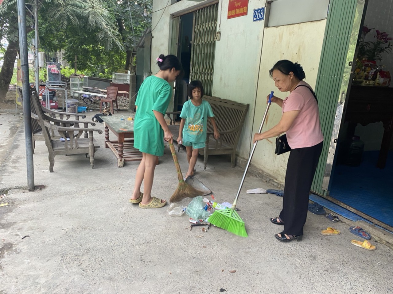 Bên cạnh việc hỗ trợ các con về vật chất, bà thường xuyên đến nhà hỗ trợ, chăm sóc các con trong nếp sống, sinh hoạt hàng ngày. Nhà bà cách nhà các con khoảng 1km, cứ lúc rảnh là bà đến thăm, khi thì gói bánh, lúc túi quả tươi, chục trứng… Bà hướng dẫn các con cách chăm sóc bản thân, sắp xếp sách vở gọn gàng, dọn dẹp nhà cửa sạch sẽ, nấu cơm giúp bố.