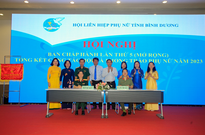 Trong năm 2023, Hội LHPN tỉnh đã làm tốt công tác tham mưu cho cấp ủy, chính quyền tổ chức hội nghị đối thoại, lắng nghe tâm tư nguyện vọng hội viên phụ nữ. Qua đó, phát huy vai trò của phụ nữ trong sự phát triển của kinh tế xã hội; đề xuất những giải pháp hỗ trợ, chính sách thu hút nâng cao trình độ của phụ nữ. Tiếp tục thực hiện có hiệu quả Đề án 02 về “Công tác dân vận tham gia xây dựng nếp sống văn hóa, văn minh”; Công tác chăm lo cho phụ nữ, trẻ em có hoàn cảnh khó khăn, trẻ mồ côi, nữ công nhân mất việc không có điều kiện về quê ăn Tết… được các cấp Hội quan tâm thông qua các Chương trình “Đồng hành cùng phụ nữ biên cương”, “Triệu phần quà san sẻ yêu thương”… Hội LHPN tỉnh nhận được sự hỗ trợ tích cực từ các dòng tu; Đặc biệt Chi hội phụ nữ Phật giáo tỉnh Bình Dương được thành lập năm 2023 đến nay đã có 500 thành viên luôn đồng hành cùng hội phụ nữ các cấp chăm lo cho phụ nữ, trẻ em có hoàn cảnh khó khăn. Hội LHPN tỉnh chủ động phối hợp với Hội Nữ doanh nhân trong thực hiện chương trình “Mẹ đỡ đầu” vận động, kết nối, hỗ trợ cho 1.764 trẻ mồ côi với tổng số quà và tiền mặt trị giá hơn 16,6 tỷ đồng. Từ nguồn vốn vay của Ngân hàng Chính sách xã hội, nguồn vốn vay do Hội Phụ nữ quản lý, đã giải ngân cho 14.865 thành viên vay với tổng số tiền hơn 459 tỷ đồng. Bên cạnh đó, Trong năm 2023, Hội LHPN tỉnh phối hợp tổ chức chương trình “Đồng hành cùng ước mơ hoàn lương” rất thiết thực và ý nghĩa cho hơn 200 phạm nhân…