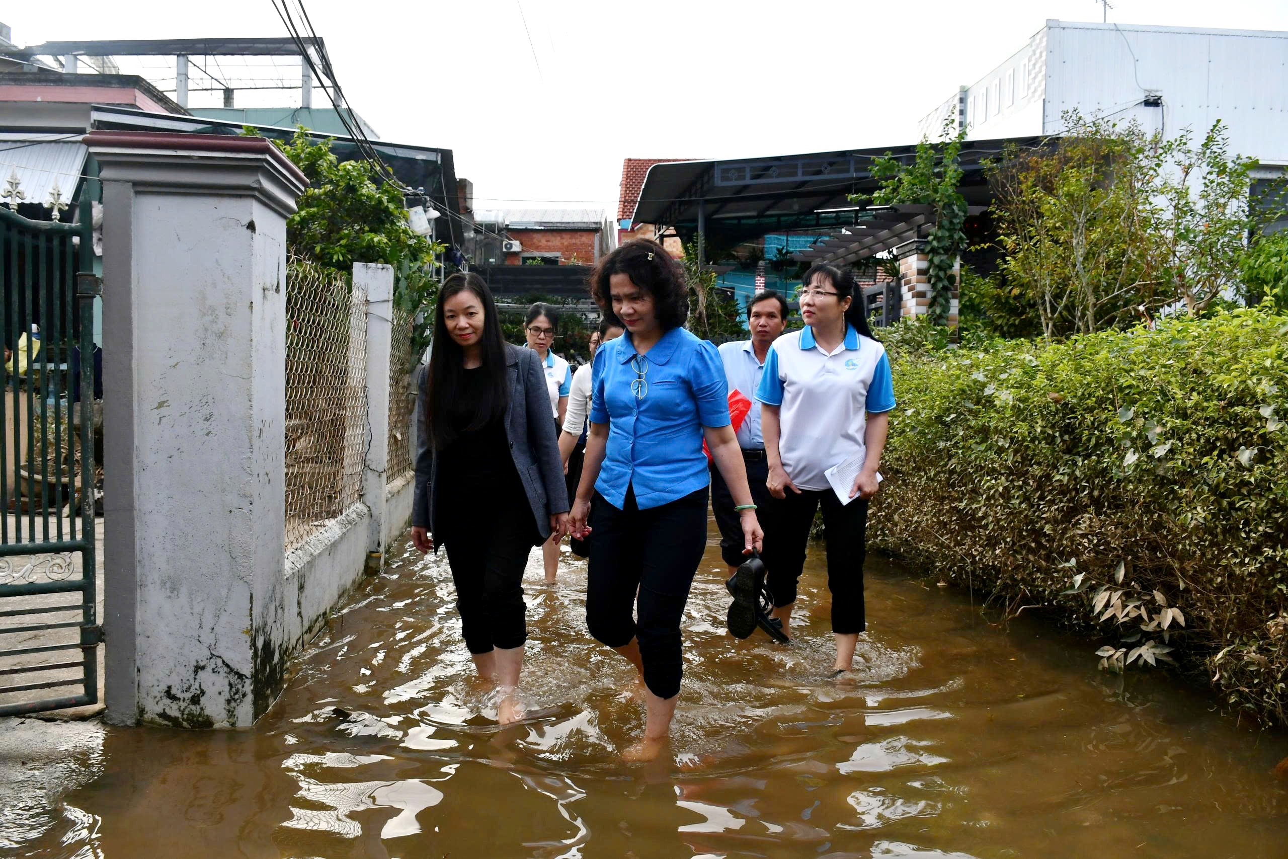 Bà Nguyễn Thị Thu Hiền, Phó Chủ tịch Trung ương Hội LHPN Việt Nam, cùng đoàn công tác đến thăm các hộ dân đang bị ngập lụt