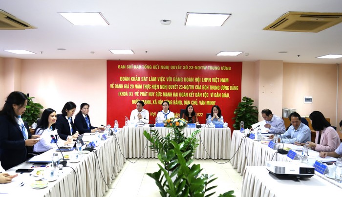 Tại buổi làm việc, các đại biểu cũng đưa ra một số ý kiến như: bổ sung nguyên nhân kết quả đạt được; khái quát bối cảnh tình hình và có cơ chế để Hội phụ nữ tham mưu cho cơ quan của Đảng giám sát, đôn đốc, thể chế hóa những nội dung Nghị quyết của Đảng về công tác phụ nữ; xác định cơ chế chính sách, tổ chức bộ máy đã phù hợp chưa. Bên cạnh đó, tại buổi khảo sát, đại diện lãnh đạo Hội và lãnh đạo các ban, đơn vị của TW Hội cũng làm rõ thêm về công tác triển khai các phong trào, hoạt động Hội hỗ trợ chị em phụ nữ có hoàn cảnh khó khăn vươn lên trong cuộc sống, phát triển kinh tế, xây dựng gia đình ở các vùng nông thôn, các khu công nghiệp chế xuất nhằm thu hút hội viên tham gia tổ chức Hội; những bất cập về nguồn lực cũng như trang thiết bị để thực hiện mục tiêu, nhiệm vụ trong các công tác quản lý hội viên, hoạt động Hội.