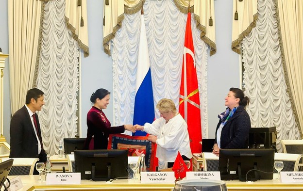 Cùng ngày, Đoàn công tác Hội LHPN Việt Nam có cuộc làm việc với nhóm nữ đại biểu của Hội đồng Lập pháp thành phố Xanh Pê-téc-bua. Tiếp đoàn có bà Shishkina, đại diện nhóm và lãnh đạo Ủy ban Đối ngoại Xanh Pê-téc-bua.