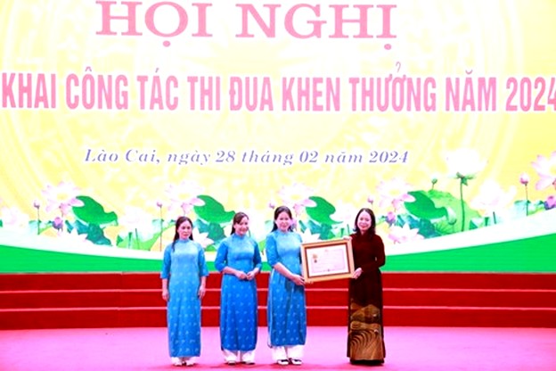 Chiều ngày 28/2, tại Hội nghị tổng kết công tác thi đua, khen thưởng năm 2023, triển khai nhiệm vụ trọng tâm năm 2024 của tỉnh Lào Cai, bà Võ Thị Ánh Xuân, Ủy viên TƯ Đảng, Phó Chủ tịch nước, Phó Chủ tịch thứ nhất Hội đồng Thi đua - Khen thưởng Trung ương, đã trao Huân chương Độc lập Hạng Ba cho tập thể Hội Liên hiệp Phụ nữ tỉnh Lào Cai.