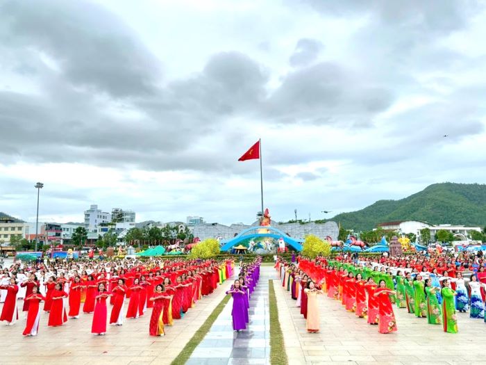 Hình ảnh đồng diễn dân vũ của hơn 600 hội viên, phụ nữ Phát biểu khai mạc, Chủ tịch Hội LHPN tỉnh Lê Thị Ngọc Lam cho biết, Đồng diễn và diễu hành Áo dài “Phụ nữ Gia Lai - Khát vọng phát triển” năm 2026 là dịp để chị em thể hiện nét đẹp của Áo dài, rèn luyện sức khoẻ và cũng là cơ hội để chị em giao lưu học hỏi, trao đổi kinh nghiệm, thắt chặt tình đoàn kết, góp phần nâng cao đời sống văn hóa tinh thần cho phụ nữ, xây dựng hình ảnh phụ nữ Việt Nam thời đại mới “Có tri thức; có đạo đức; có sức khỏe; có trách nhiệm với bản thân, gia đình, xã hội và đất nước”. Đồng thời phát huy vai trò và trách nhiệm của các cấp Hội Phụ nữ trong việc bảo tồn nét văn hoá truyền thống của dân tộc; đặt văn hoá “ngang tầm” với chính trị, kinh tế, xã hội mà Nghị quyết 80 -NQ/TW về phát triển văn hóa Việt Nam đã khẳng định.