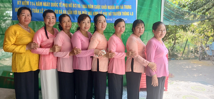 Hội LHPN tỉnh Hậu Giang phát động hưởng ứng “Tuần lễ Áo dài, áo bà ba” từ ngày 01/3 đến ngày 08/3/2024 trên phạm vi toàn tỉnh. Đây là hoạt động thiết thực nhằm tôn vinh nét đẹp, giá trị của áo dài truyền thống Việt cũng như bản sắc văn hóa của người phụ nữ Nam bộ qua chiếc áo bà ba; đã nhận được sự hưởng ứng tích cực tham gia đông đảo của phụ nữ trên địa bàn. Bên cạnh đó, để động viên hội viên, phụ nữ có hoàn cảnh khó khăn giúp chị em có thêm niềm tin, sự gắn bó, tự tin, năng động hơn trong tham gia các hoạt động/sự kiện đặc biệt là tham gia các hoạt động tổ chức Hội, Hội LHPN tỉnh đã vận động cán bộ, công chức, viên chức nữ và cộng đồng chung tay hưởng ứng và tặng trang phục không dùng đến còn giá trị sử dụng (Áo dài, áo bà ba, trang phục công sở, trang phục khác) cho phụ nữ có hoàn cảnh khó khăn tham gia hoạt động “Tuần lễ áo dài, áo bà bà” nói trên.