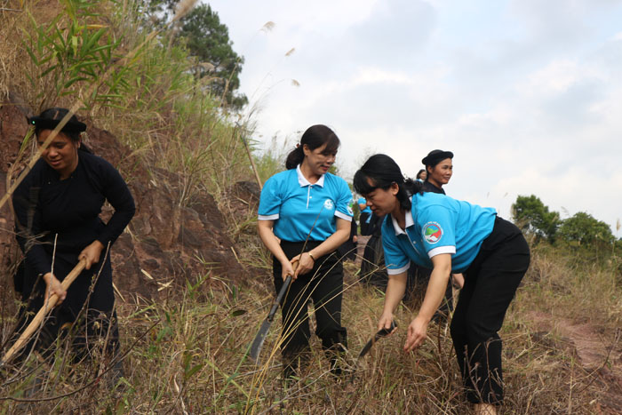 Cán bộ Hội LHPN tỉnh Lạng Sơn và Bắc Giang tham gia phát quang đường biên tại xã biên giới