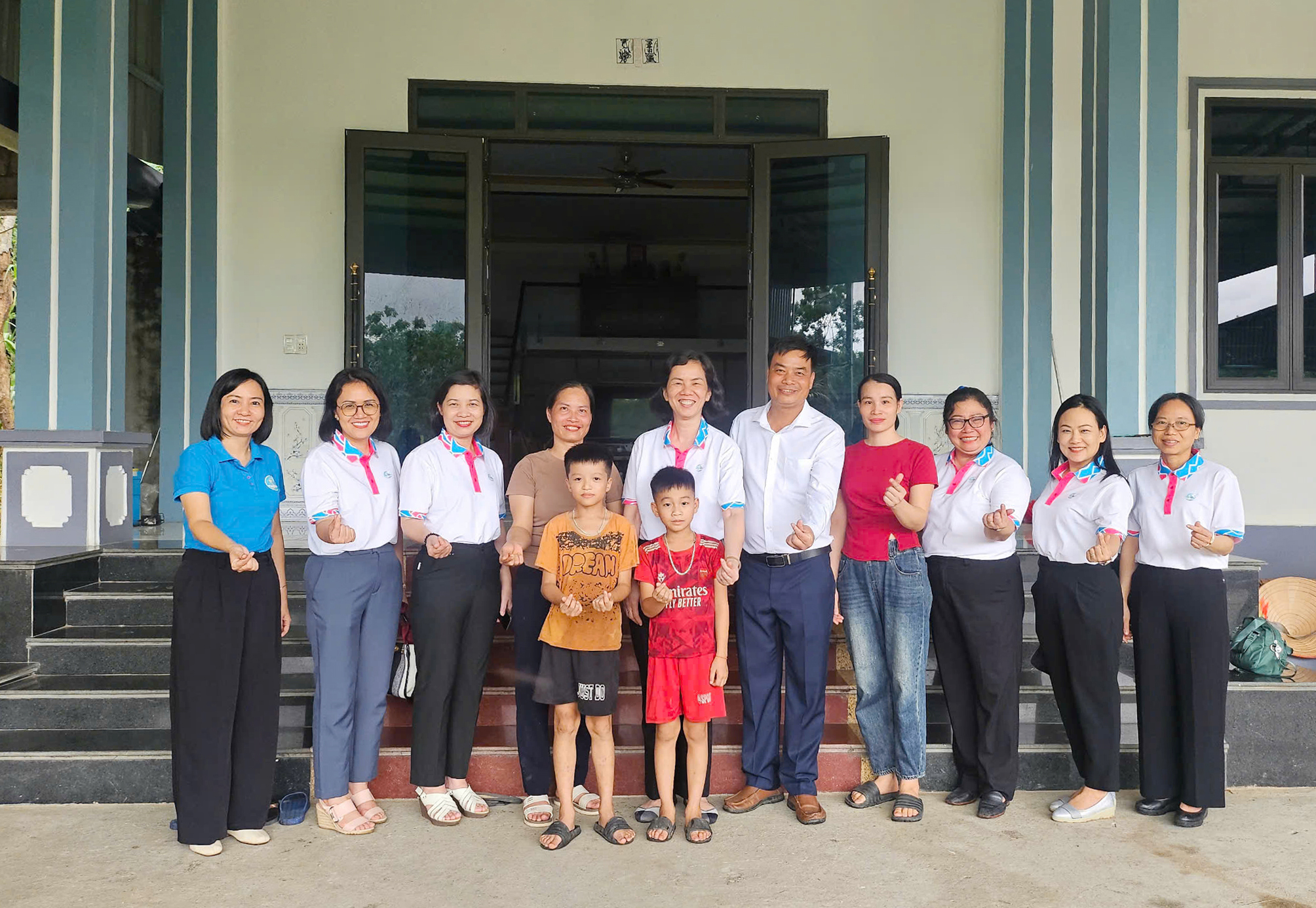 Phó Chủ tịch Hội LHPN Việt Nam Nguyễn Thị Minh Hương (thứ 6 từ phải qua) cùng đoàn công tác đến thăm gia đình chị Nguyễn Thị Huệ