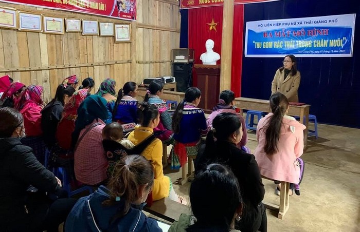 Trong khi đó, mỗi năm huyện Bắc Hà nói chung và xã Thải Giàng Phố thu hút đông đảo khách du lịch và hầu hết du khách đều đến các bản làng trải nghiệm, khám phá tìm hiểu đời sống, văn hoá dân tộc… Chính vì vậy, để khắc phục tình trạng ô nhiễm môi trường và phát triển kinh tế du lịch nông nghiệp theo hướng xanh, bền vững..., từ đầu năm 2021 Hội LHPN xã Thải Giàng Phố đã quyết tâm thay đổi cách nghĩ, cách làm của hội viên, phụ nữ và người dân bằng cách thành lập mô hình xử lý chất thải trong chăn nuôi trên địa bàn, đồng thời tuyên truyền, vận động hội viên phụ nữ hưởng ứng, tham gia. Để mô hình đi vào hoạt động hiệu quả, Hội đã phối hợp với cán bộ khuyến nông đến từng hộ hướng dẫn các hộ chăn nuôi kỹ thuật, các bước, quy trình xử lý chất thải trong chăn nuôi.