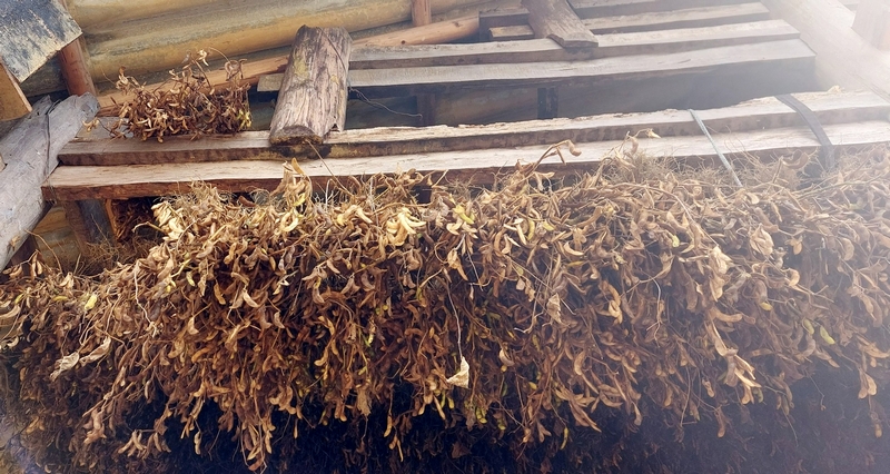 Cây đậu tương thu về, bà con người Mông thường treo lên mái nhà, để cho khô.