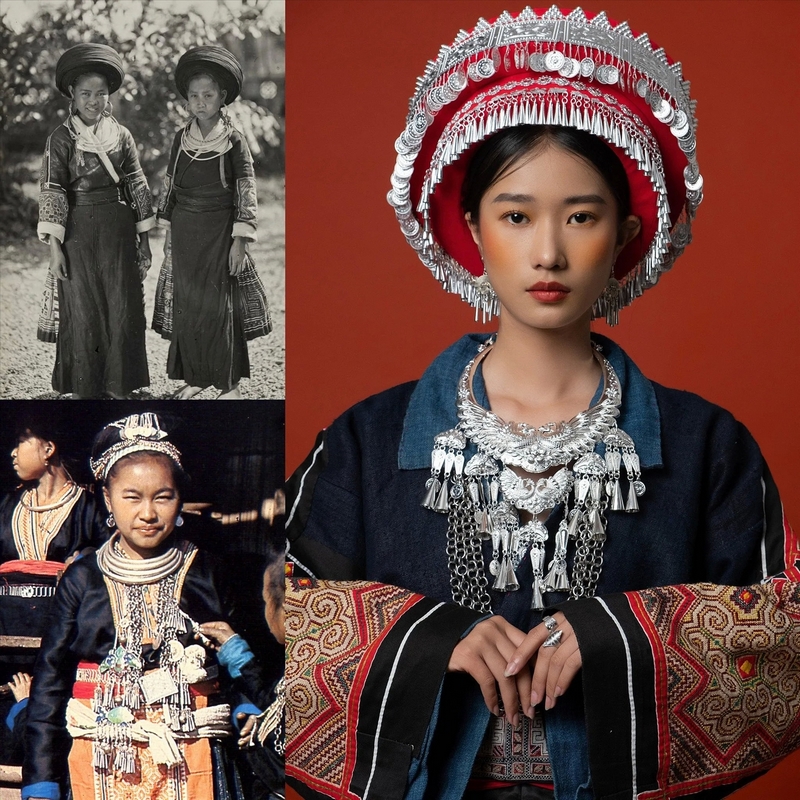 Hình ảnh tư liệu và hình ảnh tái hiện của trang phục người Mông Lềnh (Mù Cang Chải - Yên Bái)