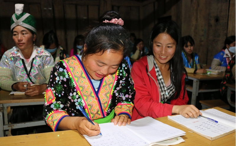 Biết chữ giúp phụ nữ vùng cao biên giới tiếp cận được kiến thức khoa học, hiểu biết về cuộc sống xung quanh, từ giảm nghèo thông tin tiến tới giảm nghèo bền vững