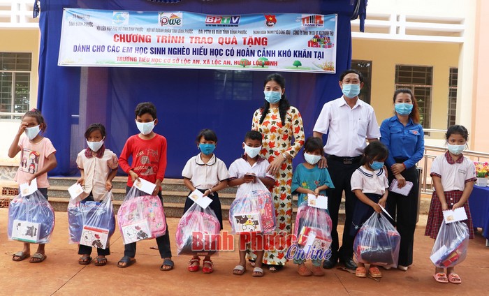 Tặng quà cho các em học sinh có hoàn cảnh khó khăn hiếu học tại Trường Tiểu học Lộc An