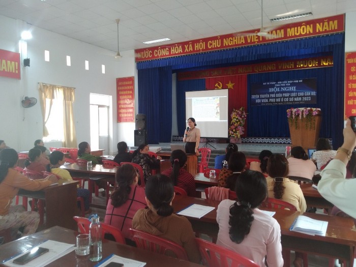 Sáng ngày 13/4/2023,  Hội LHPN tỉnh Phú Yên phối hợp với Sở tư pháp tổ chức hội nghị truyền thông, tuyên truyền Phổ biến pháp luật năm 2023 cho hơn 50 cán bộ, hội viên phụ nữ cơ sở trên địa bàn xã Hòa Quang Nam, huyện Phú Hòa.