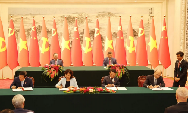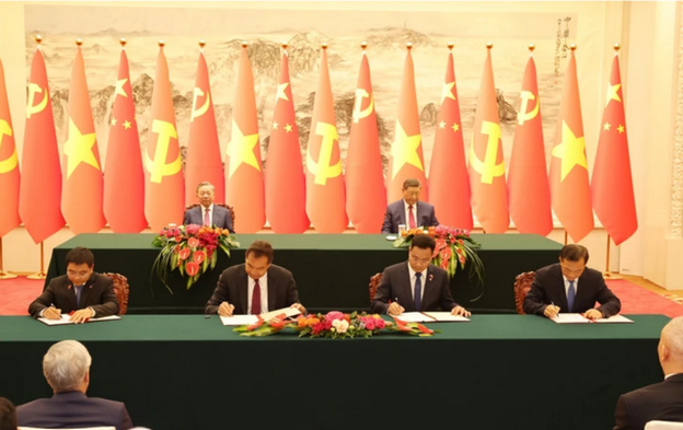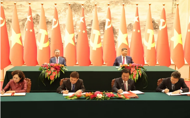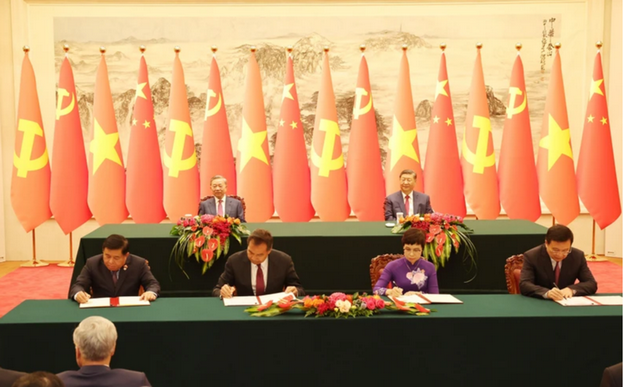 Tổng Bí thư, Chủ tịch nước Tô Lâm và Tổng Bí thư, Chủ tịch nước Trung Quốc Tập Cận Bình chứng kiến Lễ ký các văn kiện hợp tác giữa hai nước.