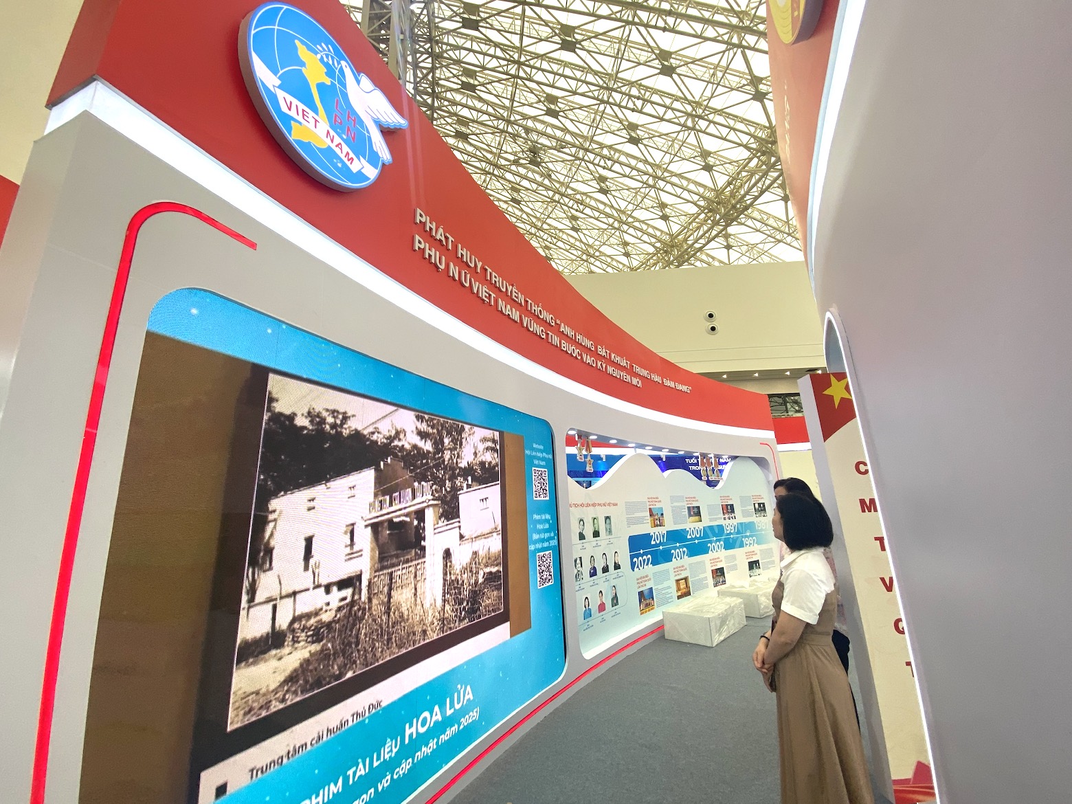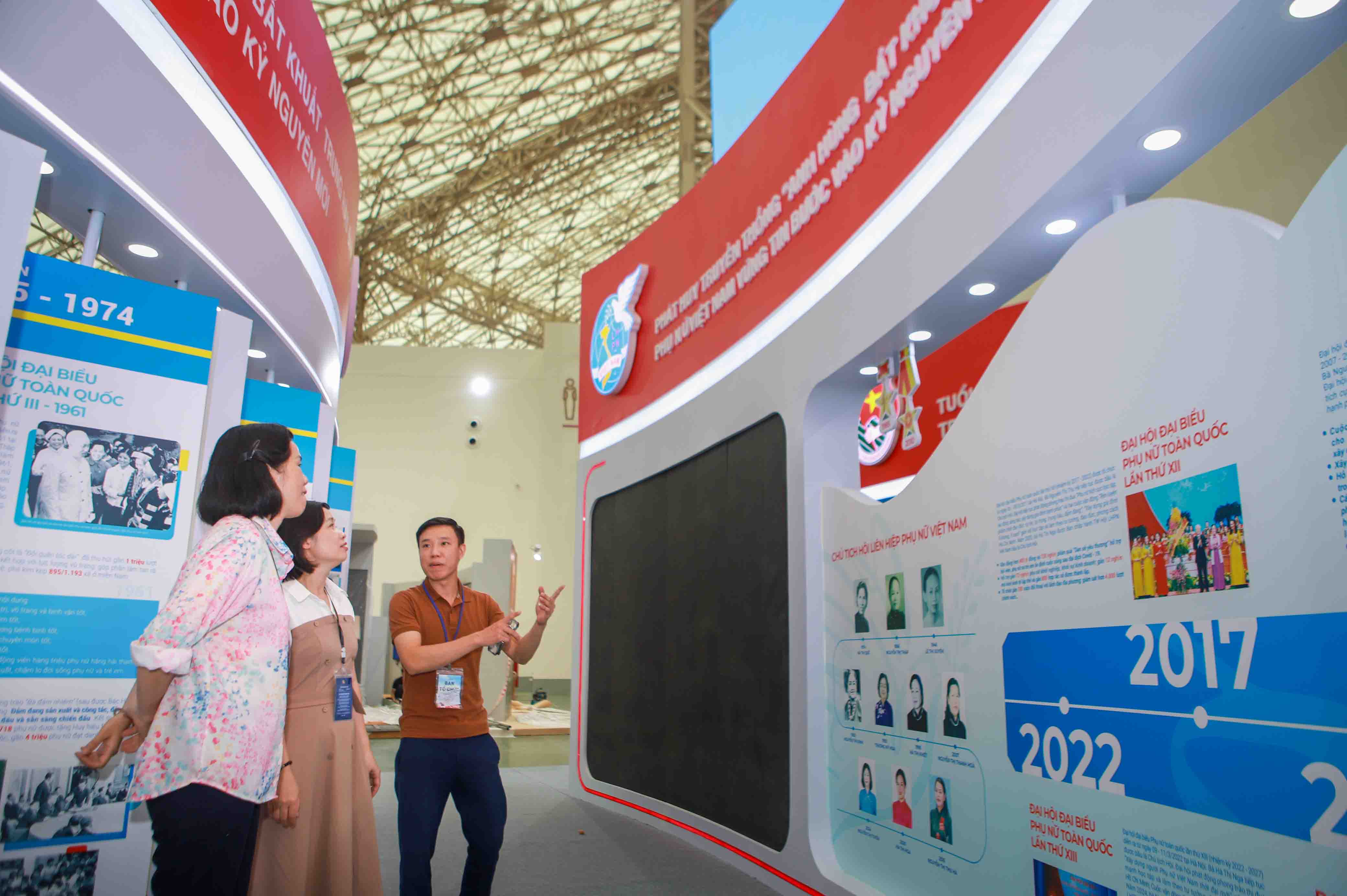 Không gian trưng bày của Hội LHPN Việt Nam nằm trong không gian trưng bày chung của Mặt trận Tổ quốc Việt Nam. Toàn bộ không gian được cách điệu theo hình bông sen. Riêng không gian trưng bày của Hội LHPN Việt Nam có các điểm nhấn nổi bật với các tư liệu, hình ảnh, màn hình LED trình chiếu các thước phim tư liệu, hình ảnh lịch sử truyền thống vẻ vang của các thế hệ, tầng lớp phụ nữ và của Hội trong suốt chiều dài lịch sử của dân tộc. Đồng thời không gian trưng bày cũng nêu bật các đóng góp của phụ nữ trong các lĩnh vực chính trị, kinh tế, văn hóa, an sinh xã hội, góp phần xây dựng và phát triển đất nước trong kỷ nguyên mới.
