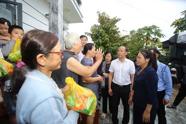 Phó Chủ tịch - Tổng Thư ký Ủy ban TƯ MTTQ Việt Nam Nguyễn Thị Thu Hà đến thăm hỏi bà con vùng lũ tỉnh Khánh Hòa