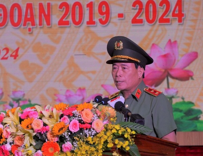 Trung tướng Lê Quốc Hùng, Ủy viên Trung ương Đảng, Thứ trưởng Bộ Công an, phát biểu tại chương trình.