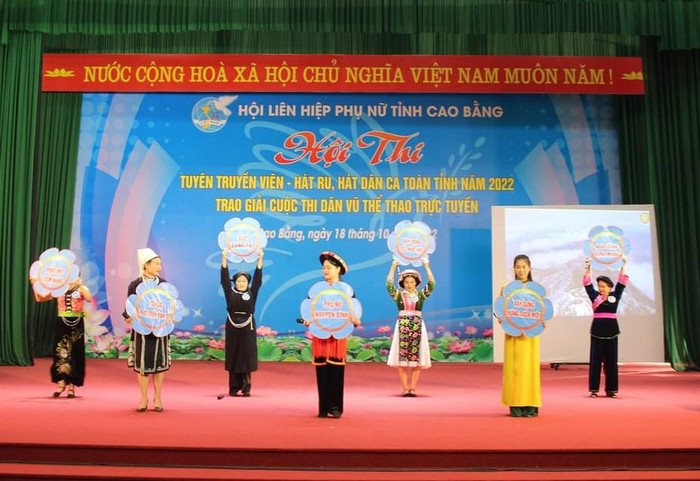 Hội thi Tuyên truyền viên - Hát ru, hát dân ca năm 2022 của Hội LHPN tỉnh Cao Bằng Hội thi nhằm tuyên truyền việc gìn giữ, bảo tồn và phát huy các giá trị lịch sử, truyền thống, cách mạng, các di sản văn hóa đặc sắc của dân tộc; gây dựng và phát triển phong trào văn hóa, văn nghệ dân gian truyền thống để bảo tồn, gìn giữ các làn điệu dân ca, dân vũ, các di sản văn hóa đặc sắc của quê hương Cao Bằng; đồng thời phát huy vai trò của cán bộ, hội viên, phụ nữ trong xây dựng phong trào văn nghệ ở các cơ sở Hội