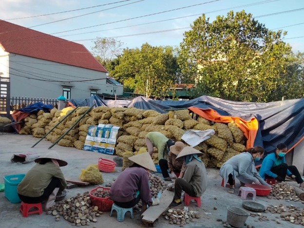 Phụ nữ xã Đông Hải đóng gói khoai tây để chuẩn bị đưa đi bán