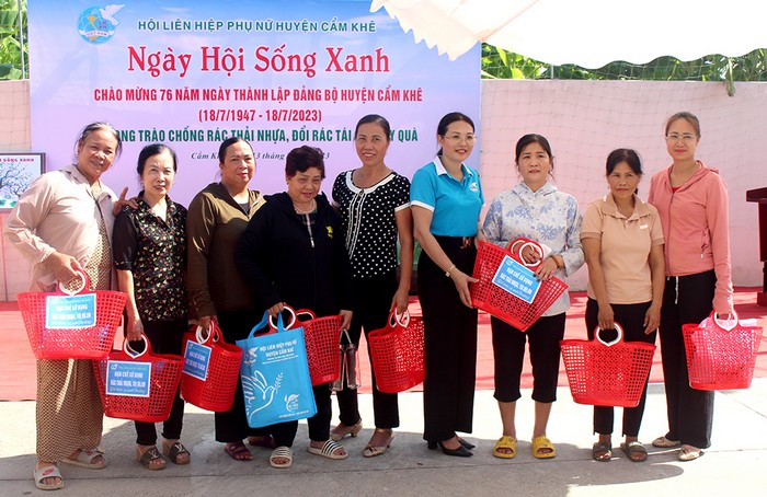 Hội LHPN huyện trao tặng làn nhựa cho hội viên, phụ nữ tham gia đổi rác lấy quà
