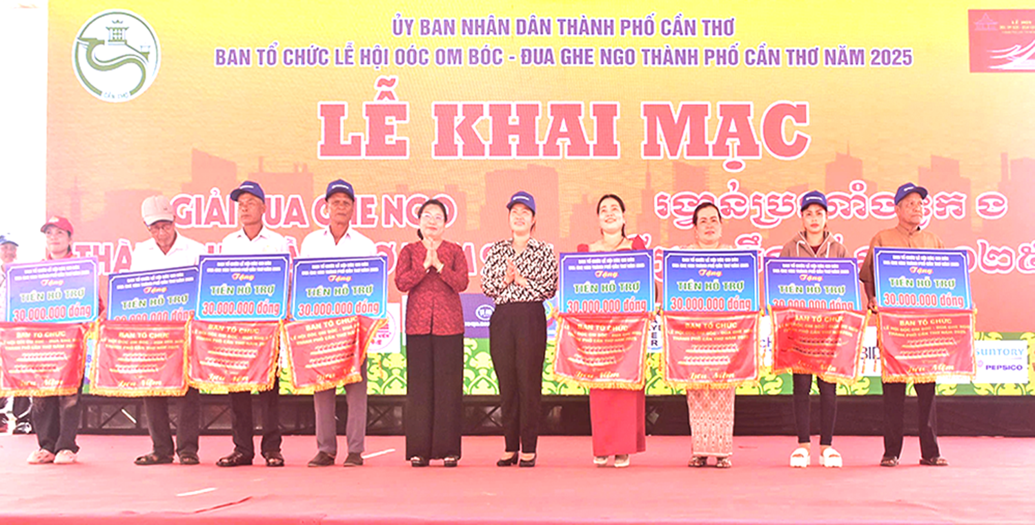Trước đó, tại Lễ khai mạc, lãnh đạo Thành ủy và UBND TP Cần Thơ đã đặc biệt trao bảng tượng trưng hỗ trợ và cờ lưu niệm cho các đội ghe Ngo nữ tham gia giải đua để cổ vũ tinh thần cho các nữ vận động viên.