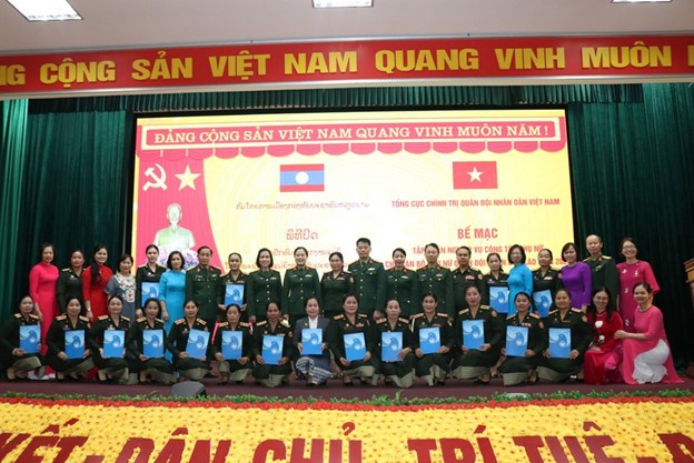 Thay mặt Ban Tổ chức, đại tá, TS Phùng Thị Phú, Trưởng Ban Phụ nữ Quân đội đã trao Giấy Chứng nhận tham gia khóa tập huấn cho các học viên phụ nữ Quân đội nhân dân Lào.