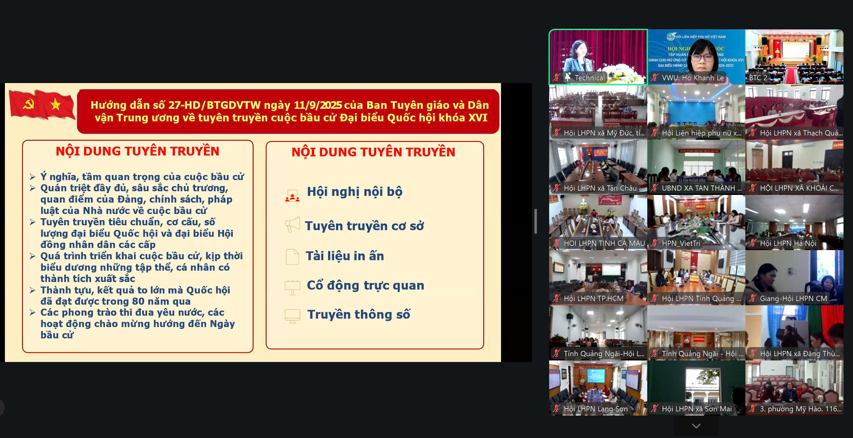 Lớp tập huấn kiến thức, kỹ năng dành cho các nữ ứng cử viên đại biểu Quốc hội khoá XVI và đại biểu HĐND các cấp nhiệm kỳ 2026 - 2031 theo hình thức trực tiếp kết hợp trực tuyến tại gần 4.000 điểm cầu tới tất cả các xã, phường, đặc khu trong toàn quốc với mong muốn góp phần hỗ trợ các nữ ứng cử viên chủ động, tự tin ứng cử thành công trong cuộc bầu cử sắp tới.