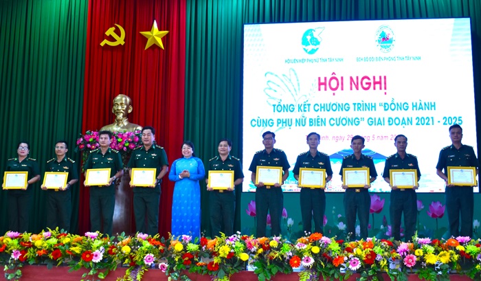 Chủ tịch Hội LHPN tỉnh Tây Ninh trao khen thưởng cho các cá nhân và tập thể của Bộ Chỉ huy Bộ đội Biên phòng tỉnh có thành tích xuất sắc trong thực hiện Chương trình giai đoạn 2021 - 2025.