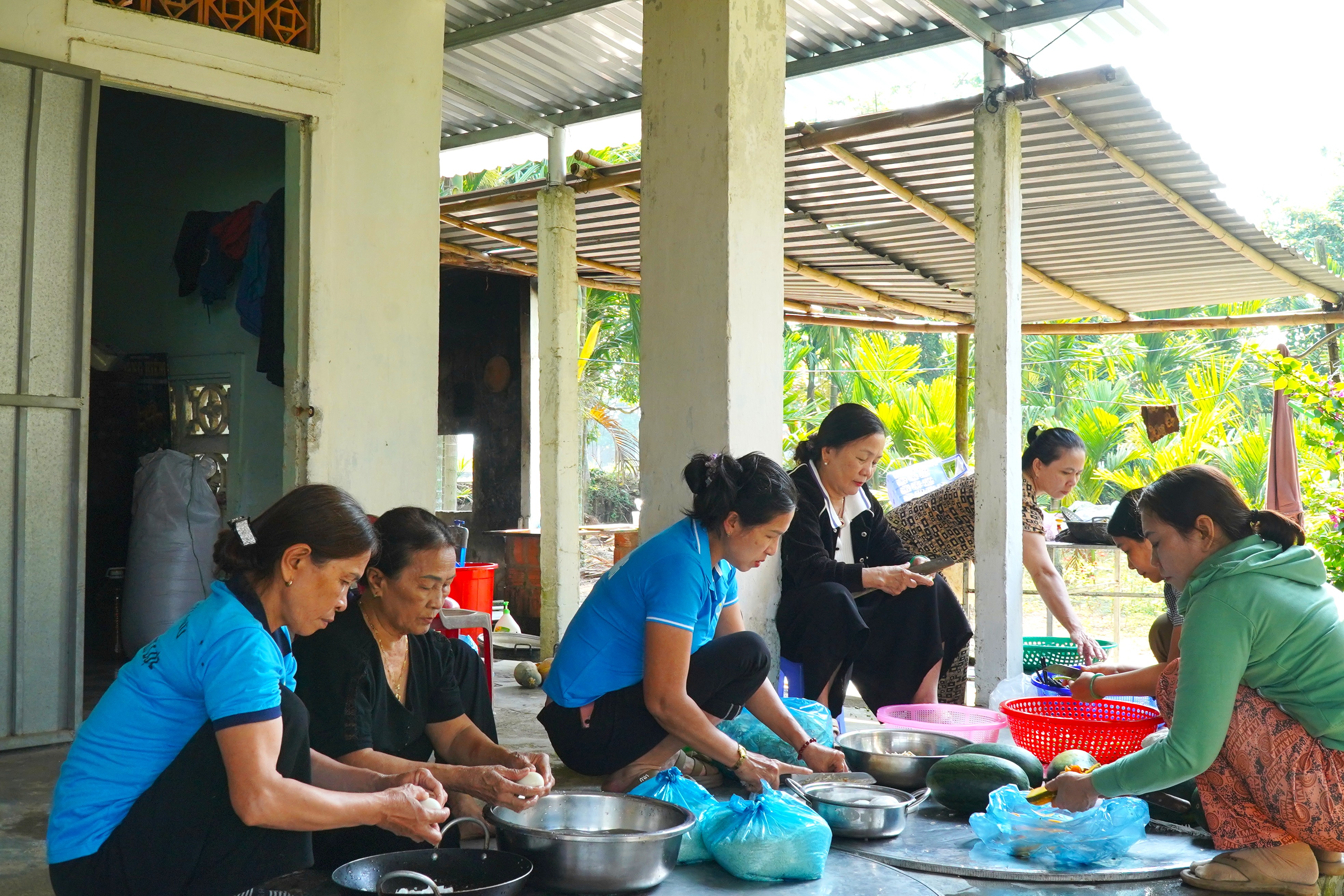 Ngay từ sáng sớm, khi sương còn đọng trên lá, gác lại những lo toan riêng, các chị em trong Ban Chấp hành Hội LHPN xã và các chi hội thôn đã có mặt đông đủ. Mỗi người một tay, các chị phân công nhau từ khâu đi chợ, sơ chế thực phẩm đến chế biến món ăn. Đây là hoạt động nằm trong kế hoạch phối hợp giữa Ban Chỉ huy Quân sự xã và Hội LHPN xã nhằm phục vụ nấu ăn cho 61 chiến sĩ dân quân tự vệ tham gia huấn luyện năm nhất (năm 2026), diễn ra từ ngày 1 - 15/4.