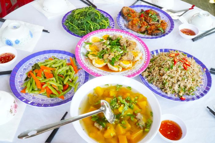 Bữa ăn do các chị nấu rất đa dạng và chất lượng, đảm bảo an toàn thực phẩm