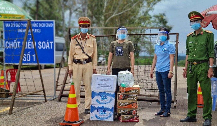 Hội LHPN TP. Pleiku thăm, tặng quà chốt kiểm soát phòng, chống dịch. Ảnh: Minh Châu