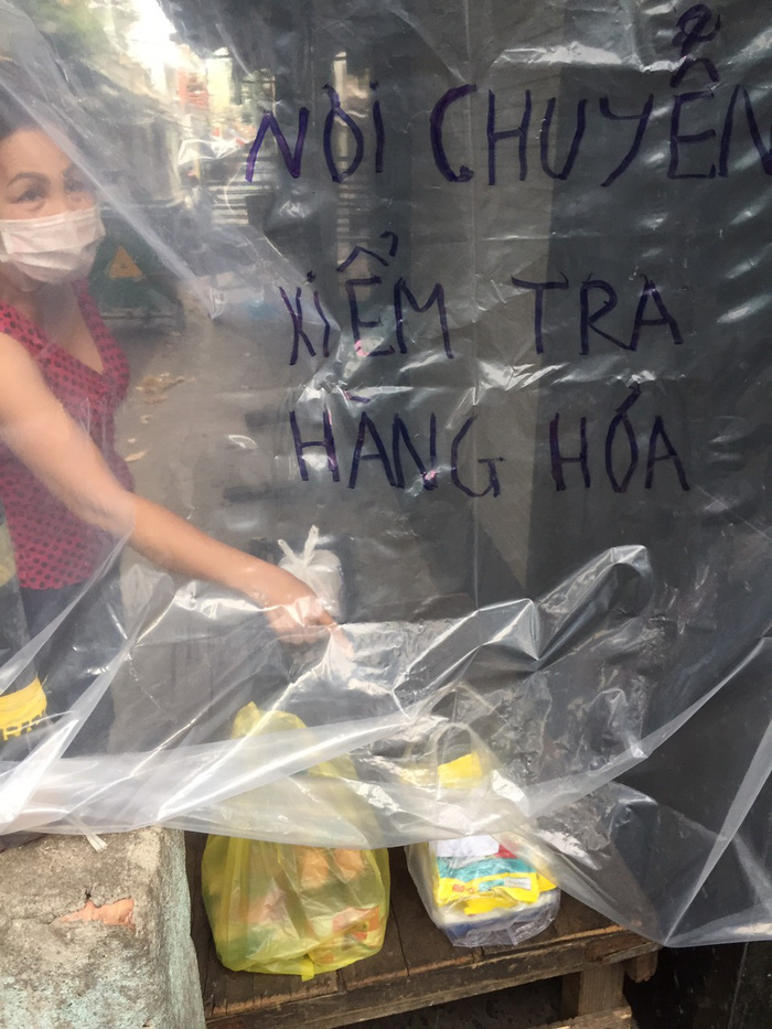 Người lạ, người giao hàng... không được vào "vùng xanh". Hàng hóa được khử khuẩn và thông báo người bên trong ra nhận