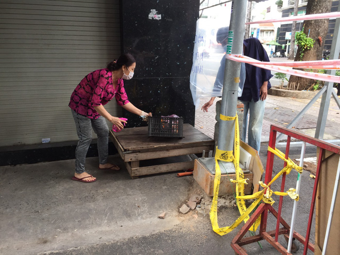 Ngoài lối đi chính, nơi duy nhất có lực lượng công an, dân phòng kiểm soát thì các ngõ còn lại đều do dân thay phiên trực. Có cả thành viên nữ như chị Tú Nga - chi hội trưởng Hội PN nhà ở đầu hẻm 351 đường An Dương Vương. Những shipper, người đưa hàng… từ nơi khác đến đều được yêu cầu gửi tại chốt, khử khuẩn hàng hóa rồi liên lạc người bên trong ra nhận. Thường thì người dân trong vùng xanh ra lấy đồ phải cũng không phải di chuyển quá xa, khoảng cách xa nhất tầm hơn 200m trở lại.