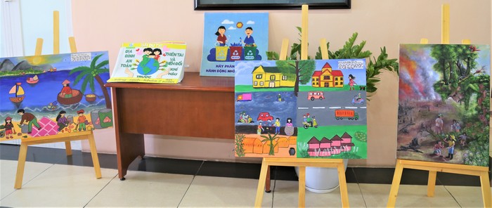 Một số hình ảnh tác phẩm tham gia cuộc thi "Gia đình an toàn trước thiên tai và biến đổi khí hậu" được trưng bày tại TW Hội LHPN Việt Nam – nơi diễn ra Lễ tổng kết và trao giải