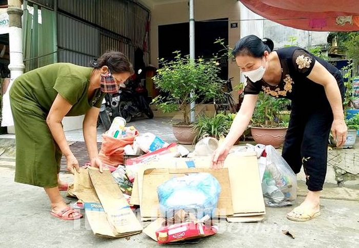 Phụ nữ tổ 3, phường Minh Xuân (TP Tuyên Quang) chủ động phân loại và tái chế rác thải tại gia đình.
