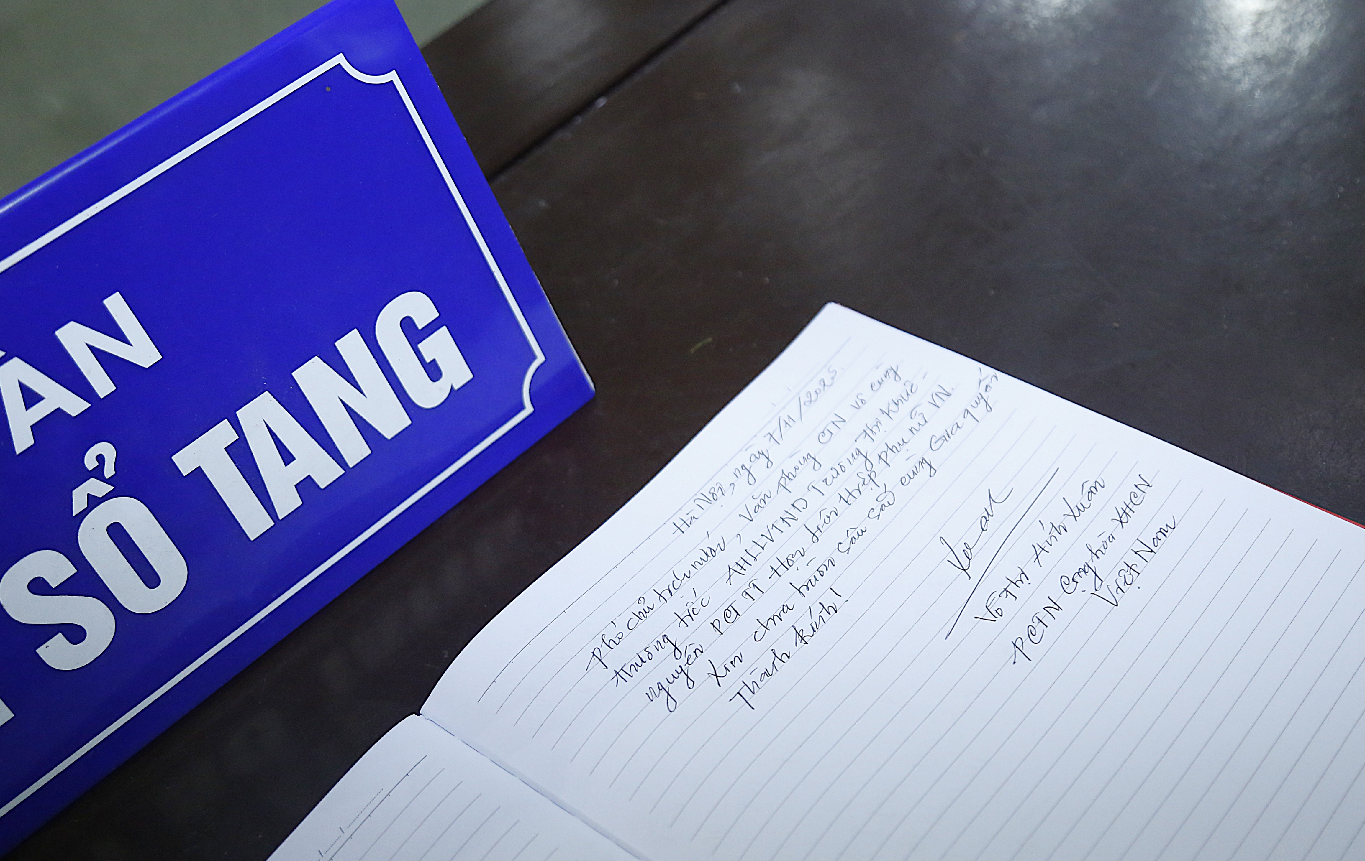 Bà Trần Lan Phương, Phó Chủ tịch Thường trực Hội LHPN Việt Nam ghi sổ tang