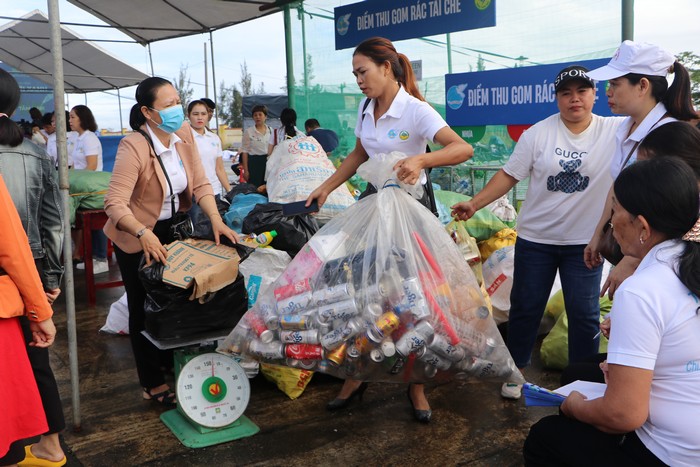 Thu gom những phế liệu mang đến sự kiện để đóng góp vào quỹ Tấm lưới xanh