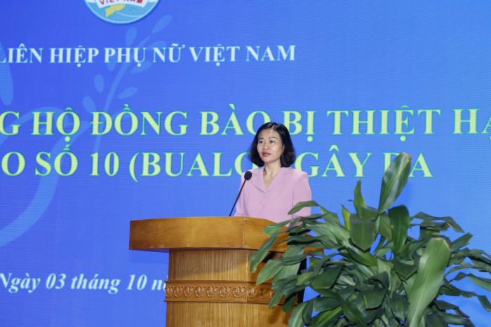 Phát biểu tại lễ phát động, Ủy viên BCH TW Đảng, Phó Chủ tịch Ủy ban TW MTTQ Việt Nam, Chủ tịch Hội LHPN Việt Nam Nguyễn Thị Tuyến bày tỏ lòng tiếc thương, chia buồn sâu sắc tới các gia đình có người thân tử vong, chia sẻ với các gia đình có người thân bị mất tích, bị thương trong cơn bão số 10. Chủ tịch Nguyễn Thị Tuyến cũng trân trọng sự hy sinh, nỗ lực của các lực lượng, đặc biệt là cán bộ, chiến sĩ, lực lượng vũ trang và nhân dân, trong đó có lực lượng cán bộ, hội viên, phụ nữ trong công tác ứng phó, cứu trợ; đồng thời gửi lời thăm hỏi, chia sẻ chân thành tới nhân dân và phụ nữ tại các địa phương chịu ảnh hưởng, thiệt hại do bão lũ gây ra.