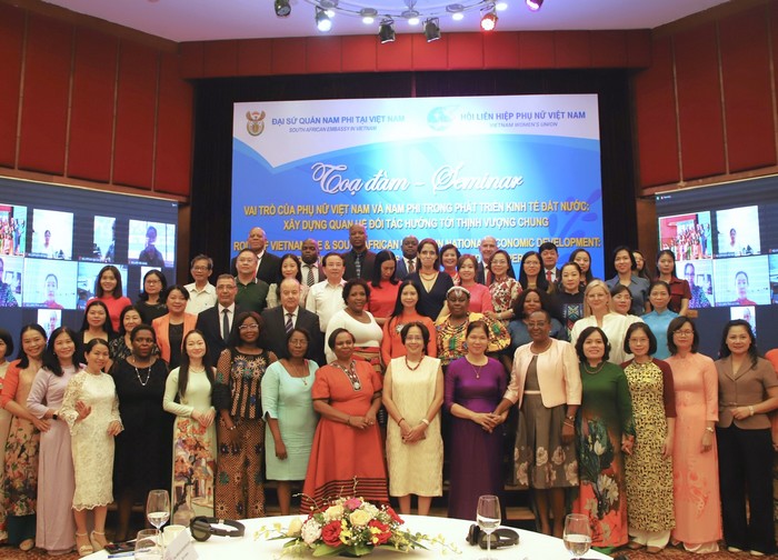 Đại sứ Nam Phi tại Việt Nam, bà Vuyiswa Tulelo bày tỏ sự vui mừng, trân trọng khi Hội LHPN Việt Nam đã cùng phối hợp tổ chức Tọa đàm bởi đây là dịp kết nối, nêu lên tiếng nói của phụ nữ hai nước và đưa ra những trao đổi hợp tác trong thời gian tới. Bà cho biết, phụ nữ Nam Phi đóng nhiều vai trò trong xã hội về các lĩnh vực như tái sản xuất, người chăm sóc, công nhân hoặc thậm chí là chủ doanh nghiệp; trong đó, Nam Phi đã áp dụng nhiều chương trình khác nhau để hỗ trợ phụ nữ khởi nghiệp và trao quyền cho phụ nữ như các chương trình ươm tạo, trung tâm phát triển thanh niên, đào tạo phát triển nghệ nhân và các chương trình trao quyền cho thanh niên. Bà Đại sứ cho rằng, cần đảm bảo rằng ngày càng có nhiều phụ nữ tham gia với tư cách là doanh nhân hoặc các nhà xuất/nhập khẩu trong phát triển nền kinh tế - xã hội giữa hai quốc gia; chia sẻ những lưu ý về các thách thức mà phụ nữ phải đối mặt liên quan đến biến đổi khí hậu; hỗ trợ thúc đẩy bình đẳng giới thông qua các nội dung được thống nhất phối hợp thực hiện giữa Hội LHPN Việt Nam và Đại sứ quán Nam Phi tại Việt Nam.