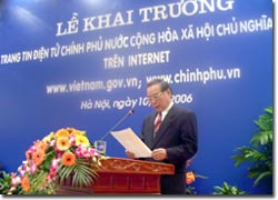 Ngày 10,1, tại Hà Nội, Văn phòng Chính phủ tổ chức khai trương Trang tin điện tử của Chính phủ nước CHXHCN Việt Nam trên internet (gọi tắt: Website Chính phủ) với tên miền: http://www.vietnam.gov.vn và http://www.chinhphu.vn. Đây là Website chính thức của Chính phủ nước CHXHCN Việt Nam trên mạng thông tin Internet toàn cầu.