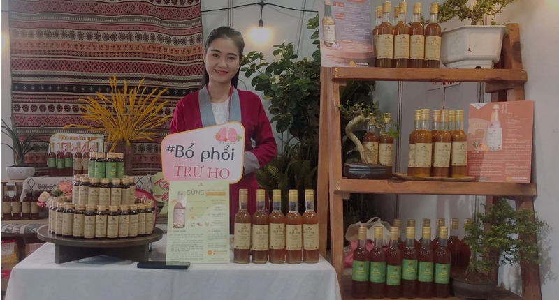 Nguyễn Lê Ngọc Linh và sản phẩm của "Vườn rừng Bản thổ" đi trưng bày, giới thiệu tại các hội chợ