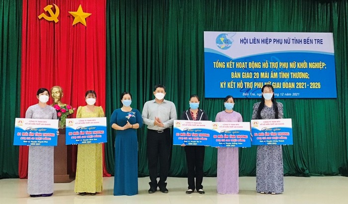 Tại Chương trình tổng kết, Hội LHPN tỉnh Bến Tre đã phát động Ngày hội Phụ nữ sáng tạo khởi nghiệp năm 2022 và ký kết chương trình phối hợp với các đơn vị tài trợ nhiều hoạt động an sinh xã hội. Đồng thời, thực hiện Chương trình “Mẹ đỡ đầu” giai đoạn 2021-2026, Công ty TNHH một thành viên xổ số kiến thiết tỉnh An Giang trao bảng bàn giao tượng trưng 20 mái ấm tình thương cho phụ nữ nghèo của tỉnh. Đây là công trình của các cấp Hội LHPN tỉnh Bến Tre chào mừng thành công Đại hội đại biểu phụ nữ tỉnh lần thứ X nhiệm kỳ 2021-2026, chào mừng Đại hội đại biểu phụ nữ toàn quốc lần thứ XIII nhiệm kỳ 2022-2027.