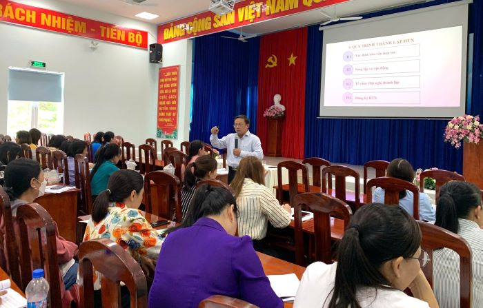 Hội LHPN tỉnh Tây Ninh phối hợp với Liên minh Hợp tác xã tỉnh tổ chức tập huấn kiến thức về kinh tế tập thể và hướng dẫn lập phương án kinh doanh khởi nghiệp năm 2024 cho 55 học viên nữ là thành viên lãnh đạo, quản lý, điều hành HTX, tổ hợp tác (THT) thuộc các huyện Bến Cầu, Gò Dầu, Tân Biên, Tân Châu và Thị xã Trảng Bàng.