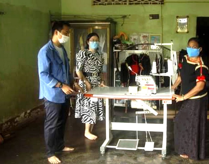 Bà Hoàng Thị Thúy - Chủ tịch hội đồng quản trị Công ty Cổ phần thực phẩm sạch Núi Xanh hỗ trợ 01 máy vắt sổ cho chị H’Yar Kbuôr