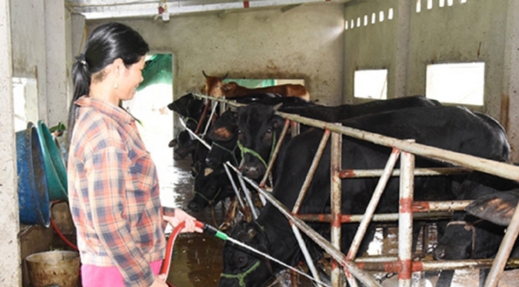 Gia đình chị Phương nuôi nhốt đàn bò 15 con, đang phát triển tốt.