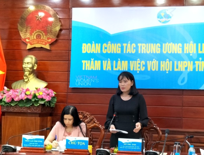 Phát biểu tại buổi làm việc, Phó Chủ tịch Hội LHPN Việt Nam Trần Lan Phương ghi nhận những kết quả các cấp Hội LHPN tỉnh Hậu Giang đã đạt được trong năm 2022, đặc biệt là các hoạt động hỗ trợ phụ nữ phát triển kinh tế, tiếp cận nguồn vốn, tham gia tiết kiệm... Phó Chủ tịch Hội đề nghị, thời gian tới các cấp Hội cần tiếp tục tập trung triển khai các nhiệm vụ trọng tâm, phong trào công tác Hội, góp phần đưa Nghị quyết Đại hội phụ nữ các cấp vào cuộc sống.