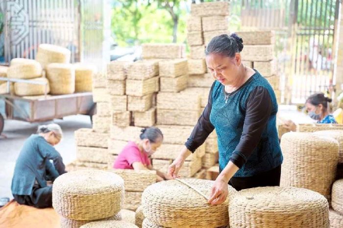Hội Phụ nữ xã Nghĩa Lâm, huyện Nghĩa Hưng dạy nghề đan cói cho hội viên phụ nữ trong xã